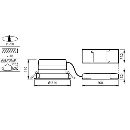 Der Ausschnitt einer Leuchte unterscheidet sich von den Abmessungen der Leuchte selbst und bezeichnet speziell die Grösse der Öffnung in der Decke, die für die sichere Montage der Lichtquelle benötigt wird.